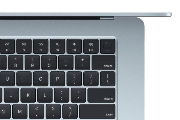 Im März 2025 stellte Apple das neue MacBook Air mit dem ultraschnellen M4 Chip vor, das bis zu 18 Stunden Batterielaufzeit, eine neue 12‑MP‑Center‑Stage‑Kamera, Unterstützung für bis zu zwei externe 6K‑Displays und mindestens 16 GB gemeinsamen Arbeitsspeicher bietet. Es ist dünn, leicht, lüfterlos und in den Farben Himmelblau sowie in Mitternacht, Polarstern und Silber erhältlich. Das MacBook Air kommt in 13" und 15" Größen, läuft im März 2025 mit macOS Sequoia und integriert Apple Intelligence für schnellere kreative und alltägliche Aufgaben. Mit Touch ID, Magic Keyboard, Liquid‑Retina‑Display, Mikrofon‑ und Lautsprechersystemen sowie hoher Energieeffizienz und recycelten Materialien.