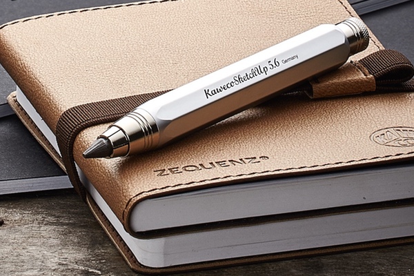 Der Sketch Up ist ein klassischer Fallbleistift aus massivem Metall (Messing, Aluminium) im unverwechselbaren Kaweco Acht Kant Format, bevorzugt für technisches und künstlerisches Zeichnen verwendet. Die hochwertige Mechanik hält eine Mine mit der Strichstärke 5,6 mm und standardmäßig dem sehr weichen Härtegrat 5B. Andere Minen sind natürlich jederzeit möglich.
